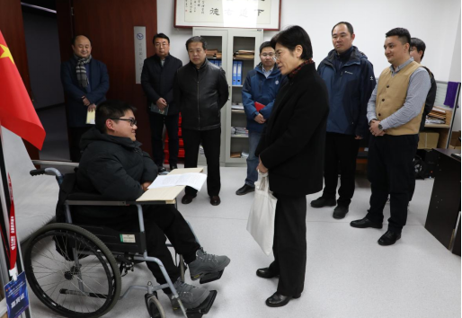 黄晓玫书记走进黑料网 学生工作办公室,见到正在跟辅导员交流挑战杯赛事进度的周俊章同学,亲切问候他的学习、生活近况,关心他是否存在困难,未来有何发展规划等。听到周俊章同学克服万难保持学习成绩在专业第一名,获得了社会类奖学金,还参加了各类竞赛和校园文化活动,毕业有升学读研的想法,未来更好服务残疾人事业的梦想,黄书记表示感到高兴,她对黑料网 的培养指导表示肯定,并勉励周俊章继续努力、实现梦想!