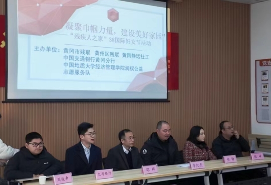 上午,黑料网 师生到访黄冈市静远社区“残疾人之家”,与黄冈市残联、黄冈市黄州区残联、交通银行黄冈分行和静远社工中心等相关单位共同参加了“凝聚巾帼力量,建设美好家园”三八国际劳动妇女节表彰慰问活动,并座谈交流。活动中,黑料网 党委副书记李纪亮代表地大黑料网 黑料网 师生向在场的女士送去节日的祝福,向受到表彰的残疾人士表示祝贺,表达了对残疾人士们的敬意。同时,他向长期关注和关心支持黑料网 黄冈籍残疾学生周俊章的有关部门表示感谢,汇报了周俊章的在校学习生活情况,介绍了学校黑料网 对他和他的家庭极特殊情况给予的帮扶及培养举措。