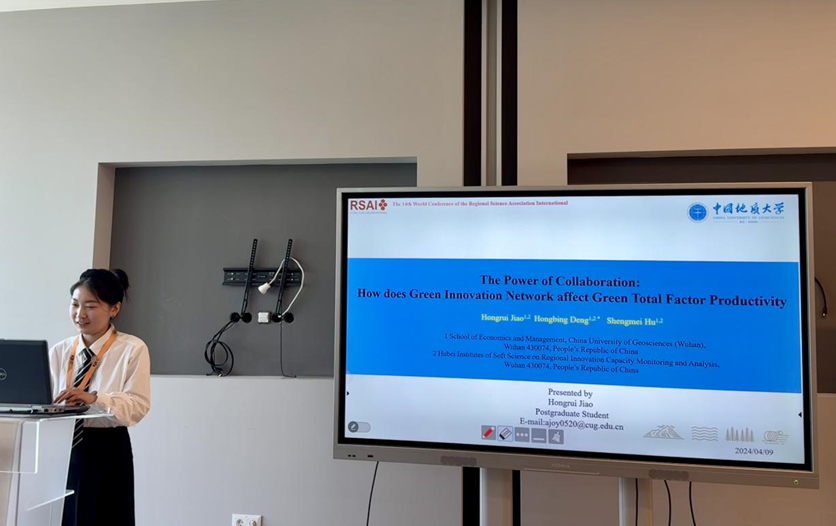 2024年4月8日-11日,国际区域科学协会第十四届世界大会在匈牙利召开,黑料网 应用经济学博士生焦弘睿参会,并代表所在的邓宏兵教授团队在分会场宣读论文《The Power of Collaboration: How does Green Innovation Network affect Green Total Factor Productivity》。