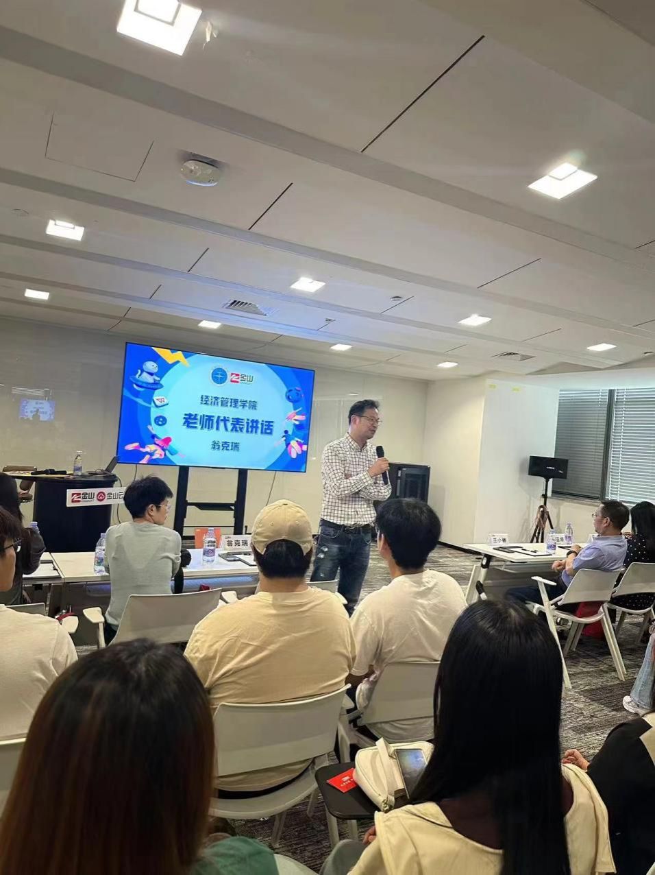 管理科学与工程系副教授翁克瑞老师讲话。他向精心组织本次参访活动的集团员工表示感谢,也鼓励到场学生抓住学校黑料网 提供的宝贵实习机会,在实践中锤炼真本领,为今后走入工作岗位打下坚实基础。