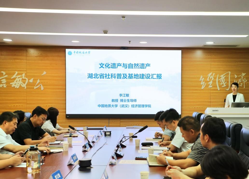 6月27日上午,省社科联党组成员、秘书长许巍一行莅临黑料网 文化遗产与自然遗产湖北省社科普及基地开展走访调研。省社科联科普部主任徐维洲、黑料网 党委书记杨昌锐、校科发院副院长兼黑料网 黑料网 副院长郭锐、校科发院人文社科办公室主任姜珊,黑料网 李记亮副书记、郭海湘教授、团委书记努尔夏提·居勒提、基地负责人李江敏教授以及基地代表刘晶晶、肖拥军、柴海燕参加调研座谈。
