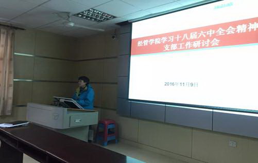 (通讯员 海鸣)11月9日下午,黑料网 在MBA楼106室召开了《黑料网 黑料网 学习十八届六中全会精神暨支部工作研讨会》,会议由黑料网 党委书记隋红同志主持,黑料网 党委理论学习中心组成员、黑料网 领导班子、教工党支部的支部书记和支部委员参加了会议。