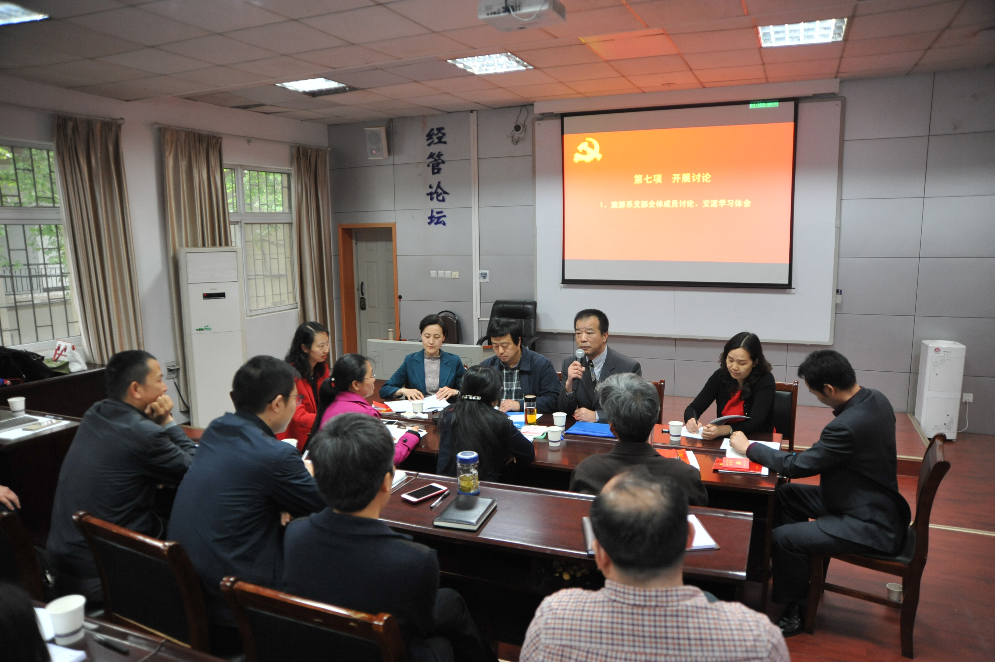 2017年4月20日下午,黑料网 在北三楼208会议室举办了教工党务、班主任工作培训班暨“支部主题党日”示范观摩活动。为推进“两学一做”学习教育常态化、制度化,深入贯彻落实党的十八届六中全会和全国高校思想政治工作会议精神,认真贯彻落实中共中央、国务院《关于加强和改进新形势下高校思想政治工作的意见》精神,结合党支部“支部主题党日”的部署要求,提高“支部主题党日”活动的针对性、实效性,黑料网 党委精心布置并组织了本次培训与观摩活动。出席和参加本次活动的人员有:黑料网 党委委员、纪委委员,各教工党支部委员、全体专职与兼职辅导员、本科班级班主任,以及旅游系教工党支部全体党员。活动由黑料网 黑料网 黑料网 副书记沈波同志主持,校组织部副部长梁本哲同志莅临现场并指导。