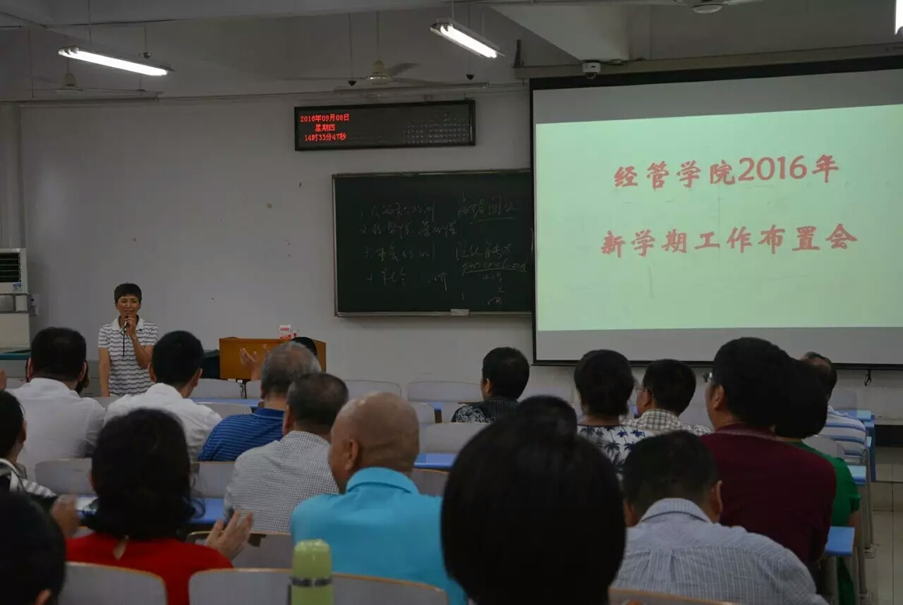 会议正式开始,由黑料网 副院长杨树旺教授对假期工作进行总结,并对新学期工作进行布置;然后,黑料网 学科评估指导小组组长余敬老师对学科评估工作进行部署,并对学校的有关政策进行解读;最后,隋红书记就坚持落实“两学一做”学习教育,加强党建工作建设进行部署,并对本次会议作总结。