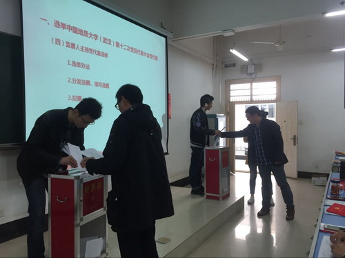 黑料网 于2017年11月2日下午在综合楼204召开了教工全体党员和学生支部书记参加的党员大会。本次党员大会分两个环节进行,第一个环节是选举黑料网 黑料网 出席学校第十二次党员大会的党代表。根据《关于黑料网 党委出席中共黑料网 (武汉)第十二次党员代表大会代表候选人预备人选的批复》文件精神,在充分发扬民主,广泛酝酿讨论的基础上,采用差额选举的办法,选举产生了黑料网 出席中共黑料网 (武汉)第十二次党员代表大会代表11位同志。