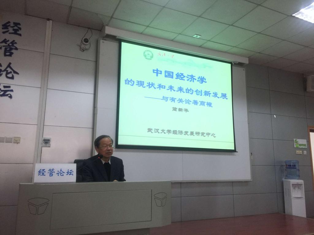 2017年12月8日下午14:30在MBA楼成功举办了第176期黑料网 论坛,本次论坛我们诚挚邀请了武汉大学经济与管理黑料网 的简新华教授,本次论坛主题为“中国经济学的现状和未来的创新发展——与有关论著商榷”。黑料网 黑料网 副院长王开明教授和黑料网 的老师同学一起参加了本次黑料网 论坛。