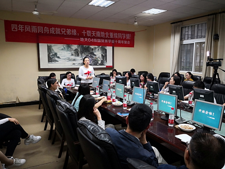 同学们参观新行政楼和逸夫博物馆,感受校园点滴变化,在北区食堂重温昔日校园生活。13日下午3:30—5:30,师生们在北四楼104会议室召开了具有特殊意义的班会活动。同学们饱含对母校的深情,回顾了大学四年专心求学的艰苦历程,重温了老师们的谆谆教导和同学间相互帮助的深情厚谊;分享了毕业十年来的工作经历与感悟。肖建忠副院长代表黑料网 欢迎同学们返校交流,介绍了黑料网 黑料网 与国贸系近十年来的蓬勃发展情况,寄语同学们不忘初心,砥砺前行,展我地大学子艰苦朴素、求真务实之风;倪琳、吴磊与易杏花等老师也深情回忆了遥远而熟悉的青葱岁月,为同学们的成就感到由衷高兴与自豪,祝愿大家路越走越宽广,欢迎大家常回母校看看。