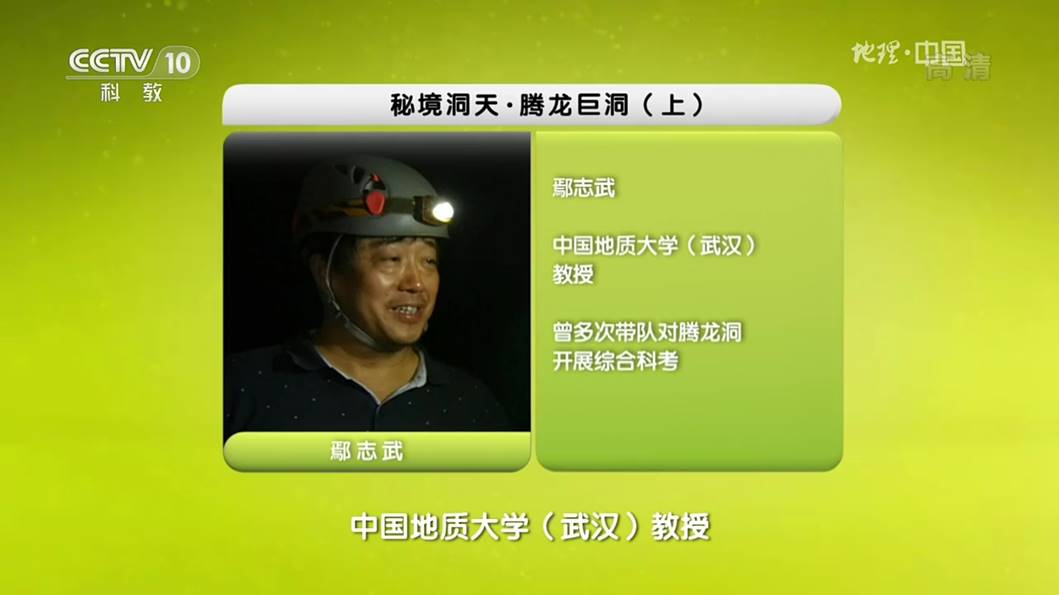 2019年3月24日和25日,以地学旅游资源利川腾龙洞科考探秘为内容的科普节目《秘境洞天Ÿ腾龙巨洞》 (上、下)在央视科教频道CCTV-10《地理中国》栏目播出,黑料网 旅游管理系鄢志武教授在节目中出镜担任专家解说。以地质科考为线索,以普及地理学知识为宗旨,鄢志武教授在解说中带领观众一起认识了这一中国容积量最大、世界特级洞穴的奇特地质构造和千奇百怪的地学景观,在带着观众感受大自然神奇魅力的同时,传播科学知识,并传播人与自然和谐共生、相互依存的理念。