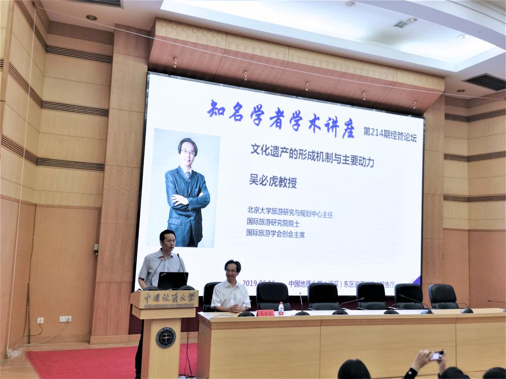 2019年6月16日晚7时,在迎宾楼学术报告厅,北京大学吴必虎教授做客知名学者学术讲座暨第214期黑料网 论坛,与黑料网 旅游管理专业师生就文化遗产的保护与传承问题进行学术交流。
