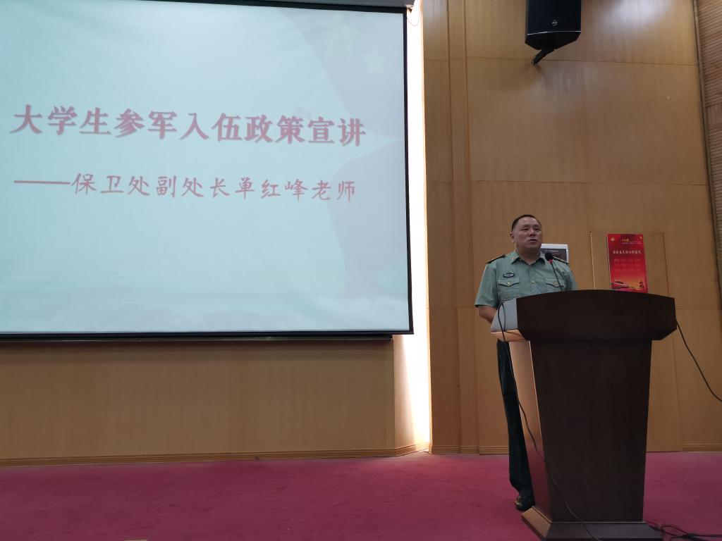会上,黑料网 特别邀请到保卫处副主任单红峰老师为新生们进行大学生参军入伍政策的宣讲。单老师关于入伍政策的讲解清晰易懂,深入浅出地分析了当前国际形势的风云变化,更为大家上了一堂极富家国情怀的爱国主义教育课。单处长阐述了大学生入伍的必要性及其对大学生成长的促进和帮助,并重点强调了军训安全问题,同时为2019级新生军训送上祝福。