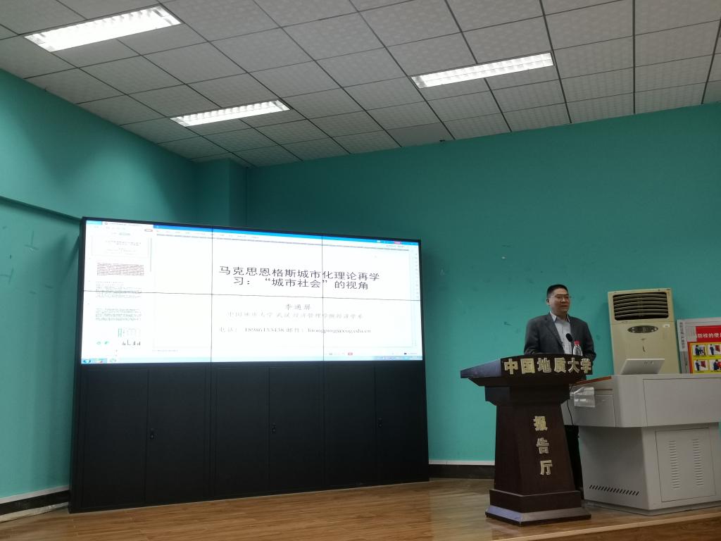 本期活动的主讲人是经济学系李通屏教授,他展开了题目为《马克思恩格斯城市化理论再学习:“城市社会”的视角》的读书分享。李通屏老师从为什么再学习切入主题,分享了相关术语与书目介绍、城市住宅及一般小住宅的“稀少和昂贵”是与快速城市化长期相伴的“慢性病”、城市化和资本主义城市社会的风险和危机等方面内容,并推荐同时阅读《共产党宣言》、《资本论》、《论住宅问题》的等书籍来辅助理解本书内容。李老师深入浅出,分析了马克思对于城市化中蕴藏的风险和危机的思考,为同学们奉献了一堂干货满满的读书分享会。