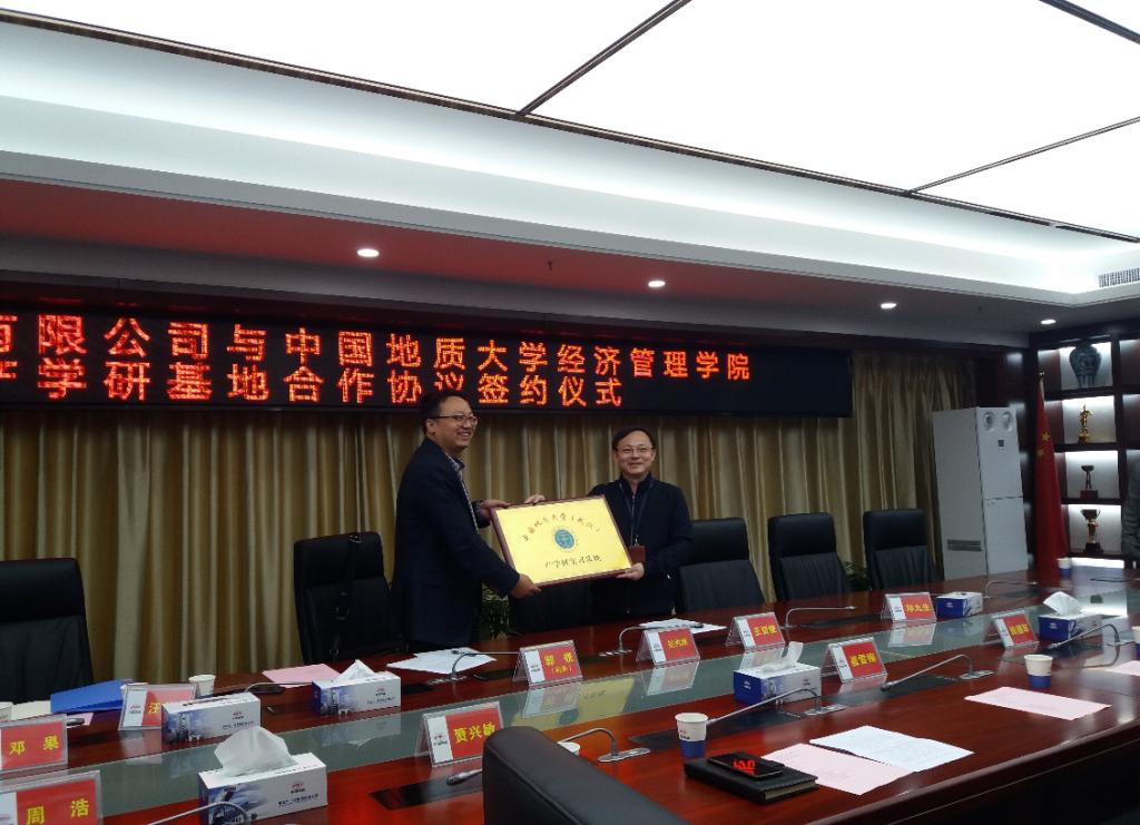 会后,郭锐老师与财务部部长王贤俊分别代表双方在产学研基地合作协议书上签字。