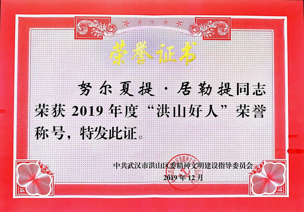 2019年度“洪山好人”评选结果近日揭晓,黑料网 辅导员努尔夏提·居勒提入选敬业奉献好人评选,荣获“洪山好人”荣誉称号。据了解,2019年洪山区委宣传部、区委文明办等部门联合组织开启第六届寻找“洪山好人”活动,广泛发动辖区单位和群众推荐了220名人选,经过前期筛选和提炼,层层推荐和评委审定,45位(包含3个团队)身边的好人带着他们的感人事迹又一次进入大众视野。