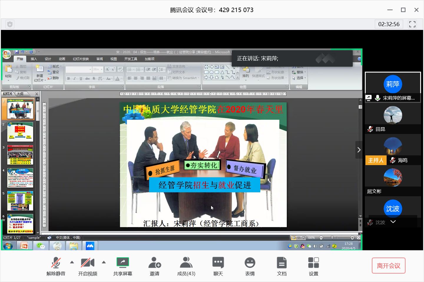 院长杨树旺肯定了与会老师的发言。他提出,招生和就业都是关乎人才培养质量的重要环节。新高考的变化使得招生工作从学校层面直接下沉到各专业,影响到了专业发展,要顺应潮流,充分利用线上方式和新媒体工具做好宣传工作。针对疫情对黑料网 的就业工作的影响,杨院长要求各系提高政治站位,学工组提供具体指导,系主任、班主任、导师齐抓共管,用好校友在内的各项资源,全力做好就业工作。要求班子成员对口联系各系,督促工作落实招生和就业工作。