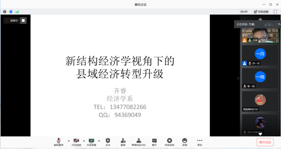 7月8日晚,黑料网 黑料网 经济学系认识实习首场线上讲座顺利召开,经济学系2019级学生全部参加。经济学系支部书记齐睿老师主持会议并做主题讲座,李通屏教授出席会议。