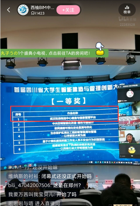 2020年11月7日,由四川省教育厅主办,西南石油大学承办的首届四川省智能建造与管理创新大赛总决赛在互联网上在线举行。大赛欢迎省外高校参加,黑料网 工程管理专业同学组成了两支队伍参加了本届比赛,经过三个多月的作品准备和初赛,共有53支代表队进入最后总决赛。