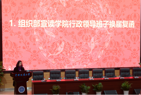 组织部副部长孙莉同志宣读黑料网 行政领导班子换届复函