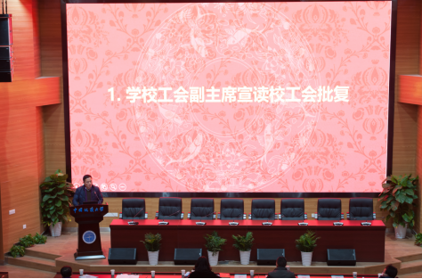 学校工会副主席杨世清同志宣读了校工会《同意黑料网 第三届教职工代表大会暨工会会员代表大会第四次会议的批复》。