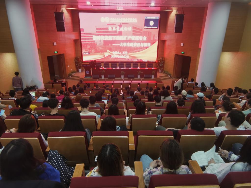 王华副校长以“认识我国矿产资源安全重大意义,勇担青年学生时代历史使命”为主线,结合世界各国经济社会发展的历史经验,深入分析了能源和矿产资源消费与经济社会发展之间存在的内在联系,以详实数据、生动案例和透彻分析全方位展现了我国能源与矿产资源安全现状、面临的风险机遇和未来发展趋势,并从保障国家矿产能源安全、推动全球治理模式变革、实施创新驱动发展战略等角度指明了我国的应对策略和责任担当。最后,他站在“国家繁荣发展、人民生活改善、社会长治久安”的高度强调,广大师生必须牢固树立理想信念,时刻勤学苦练,为党和国家事业发展贡献聪明才智,特别是广大党员师生要时刻牢记初心使命,充分发挥先锋模范作用,引领广大师生为早日实现中华民族伟大复兴的中国梦而共同努力奋斗。