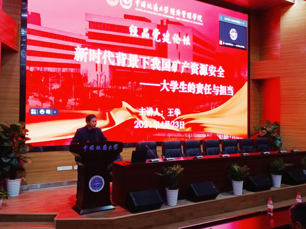 4月23下午,学校党委常委、副校长王华教授作客“经品党建”论坛,以《新时代背景下我国矿产资源安全——大学生的责任与担当》为主题,为全院200余名师生党员讲授第一堂党课。南望山校区师生同时以线上形式同步参与。黑料网 党委书记杨昌锐主持党课。
