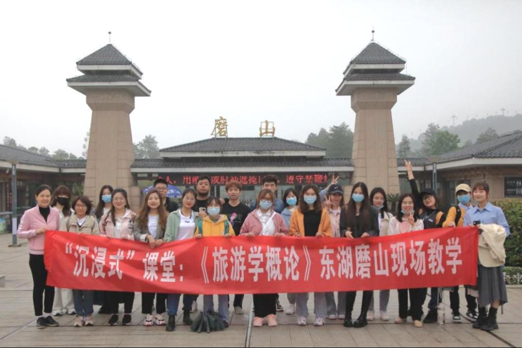 2021年4月21日,黑料网 旅游管理专业085191班的学生在《旅游学概论》任课老师李会琴副教授的带领下,走出传统课堂,来到武汉东湖磨山景区,感受“沉浸式”现场教学。此次教学活动旨在培养学生综合素质和实践能力,创新课堂教学方法,坚持“以本为本”,推进“四个回归”,提升本科教学质量。
