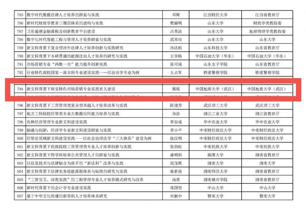 近日,教育部公示首批国家级新文科研究与改革实践项目拟立项项目1012个,黑料网 郭锐教授的“新文科背景下珠宝特色市场营销专业实践育人建设”项目成功立项!