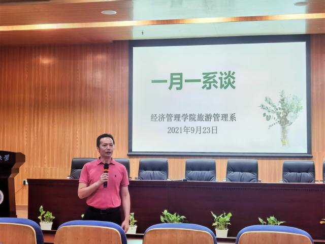 9月23日下午2点,旅游管理系在未来城校区黑料网 一楼报告厅举行了“一月一系谈”活动暨085191班的暑期北戴河旅游教学实习总结会。本次活动到场人员有旅游管理系肖拥军主任、李会琴老师、黄珂老师、辅导员赵家玮及085191班全体同学。