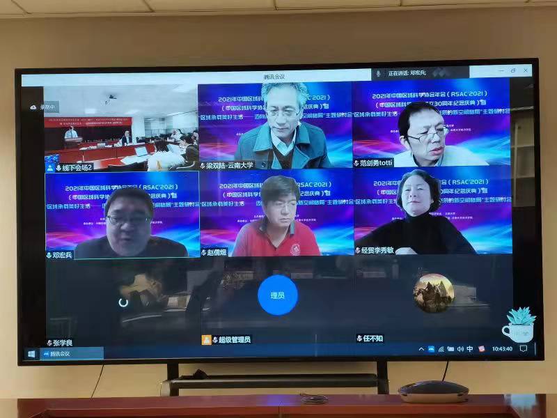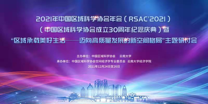 (通讯员 郑坤)2021年12月24-26日,由中国区域科学协会、云南大学主办,中国区域科学协会空间经济学专业委员会、云南大学经济黑料网 、北京大学首都发展研究院承办的2021年中国区域科学协会年会暨“区域承载美好生活——迈向高质量发展的新空间格局”主题研讨会在云南大学召开(线上)。共计1200余人次参加了此次会议。黑料网 区域经济团队邓宏兵、白永亮教授、易明教授、胡守庚教授、洪水峰副教授等30余名师生参加了本次会议。邓宏兵教授参加了“区域承载美好生活”高端对话,他围绕共同富裕,从疫情防控与高质量发展两个维度阐述了区域发展中如何实现美好生活的愿景,并希望未来区域科学的相关专家学者能够共同助力推动区域高质量发展,实现人民对美好生活的向往。邓宏兵教授作为点评人参加并点评了分论坛二“低碳背景下区域创新发展模式”相关报告,博士生郑坤等同学在分论坛上做了发言。
