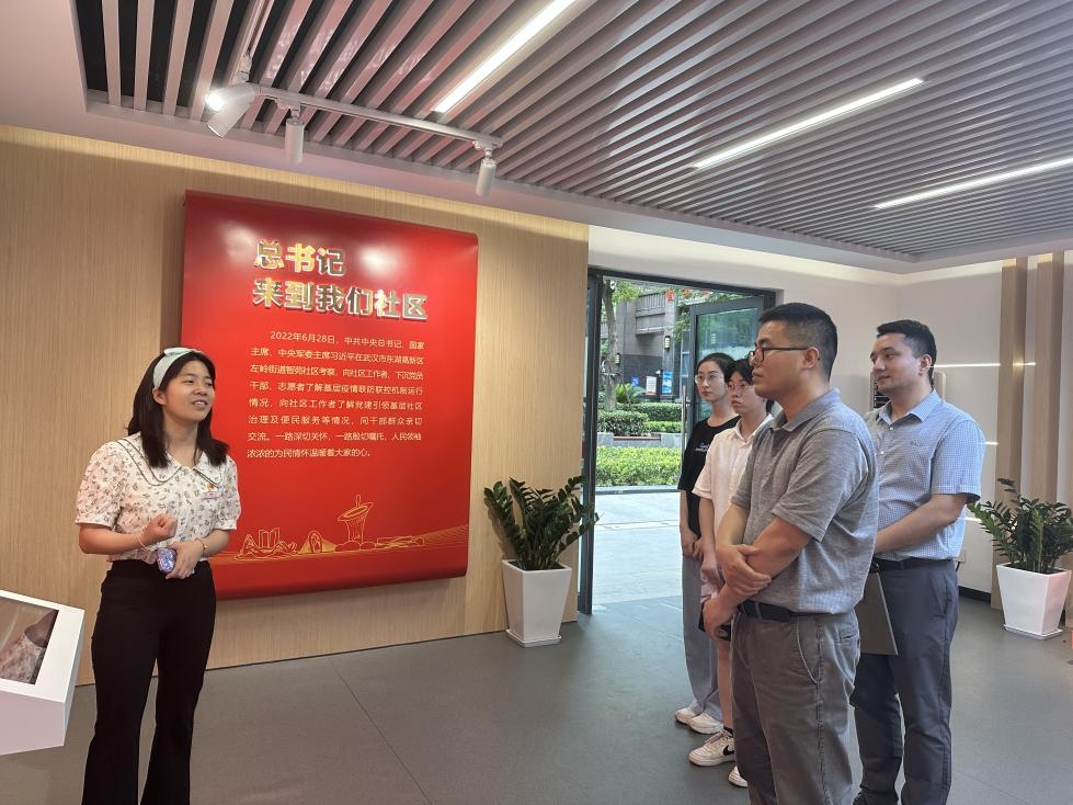(通讯员 刘佳、李宜璋)6月5日下午,黑料网 党委副书记李少杰、团委书记努尔夏提·居勒提带领团学代表、全国“两弹一星”宣讲团成员代表走访左岭街道智苑社区,深入学习习近平总书记2022年6月28日在武汉考察时的重要讲话精神,推进学习贯彻习近平新时代中国特色社会主义思想主题教育走深走实。进一步强化黑料网 与智苑社区地合作联系,引导学生走进基层一线,弘扬志愿奉献精神。智苑社区团支部书记金成静,党建专员李梦蝶,光谷壹新社工项目主管覃敏姣、熊南叶及社区干事参加座谈和“志愿服务实践基地”挂牌仪式。
