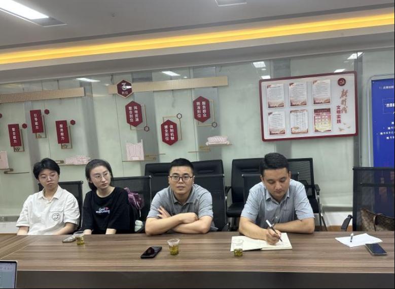 光谷壹新社工项目主管覃敏姣介绍了社区暑期托管班等项目计划,提出招募志愿者和助教等诉求,并高度肯定了黑料网 志愿者在学雷锋月等活动中服务社区工作的积极表现,希望继续深化合作开展系列项目。努尔夏提·居勒提老师与工作人员就项目对接进行了详细交流,并介绍了黑料网 “经鹰少年”宣讲队、启明星盲校支教团、经鹰宣讲团、志愿者工作部等发展情况,表达了推动志愿服务和社会实践进社区的期待。