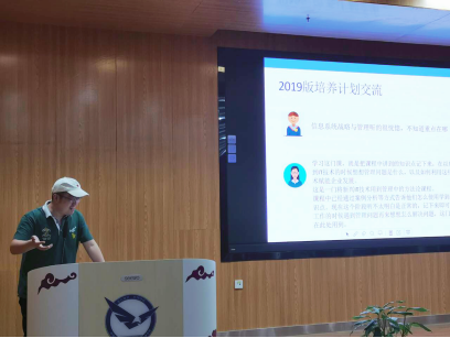 其次,是2019版培养方案交流环节。活动前,信管专业的班长已提前向同学们征集了对于培养方案的问题与建议,涵盖课程安排、结课压力、课程质量等方面。江毅老师向同学们罗列了收集的问题,给大家传达了授课老师对相关问题的回复。