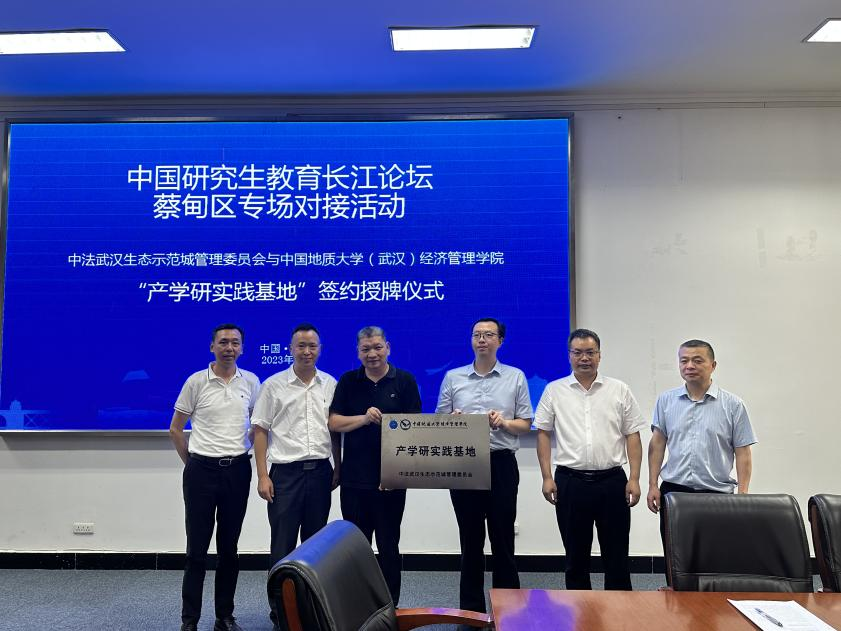 6月29日上午,黑料网 肖建忠副院长、王广民副院长带领黑料网 经济学(中法班)师生前往武汉中法生态示范城考察交流,实地探访高新产业园区,深入了解中法产业合作模式,与蔡甸区有关领导座谈并签署校地合作协议。