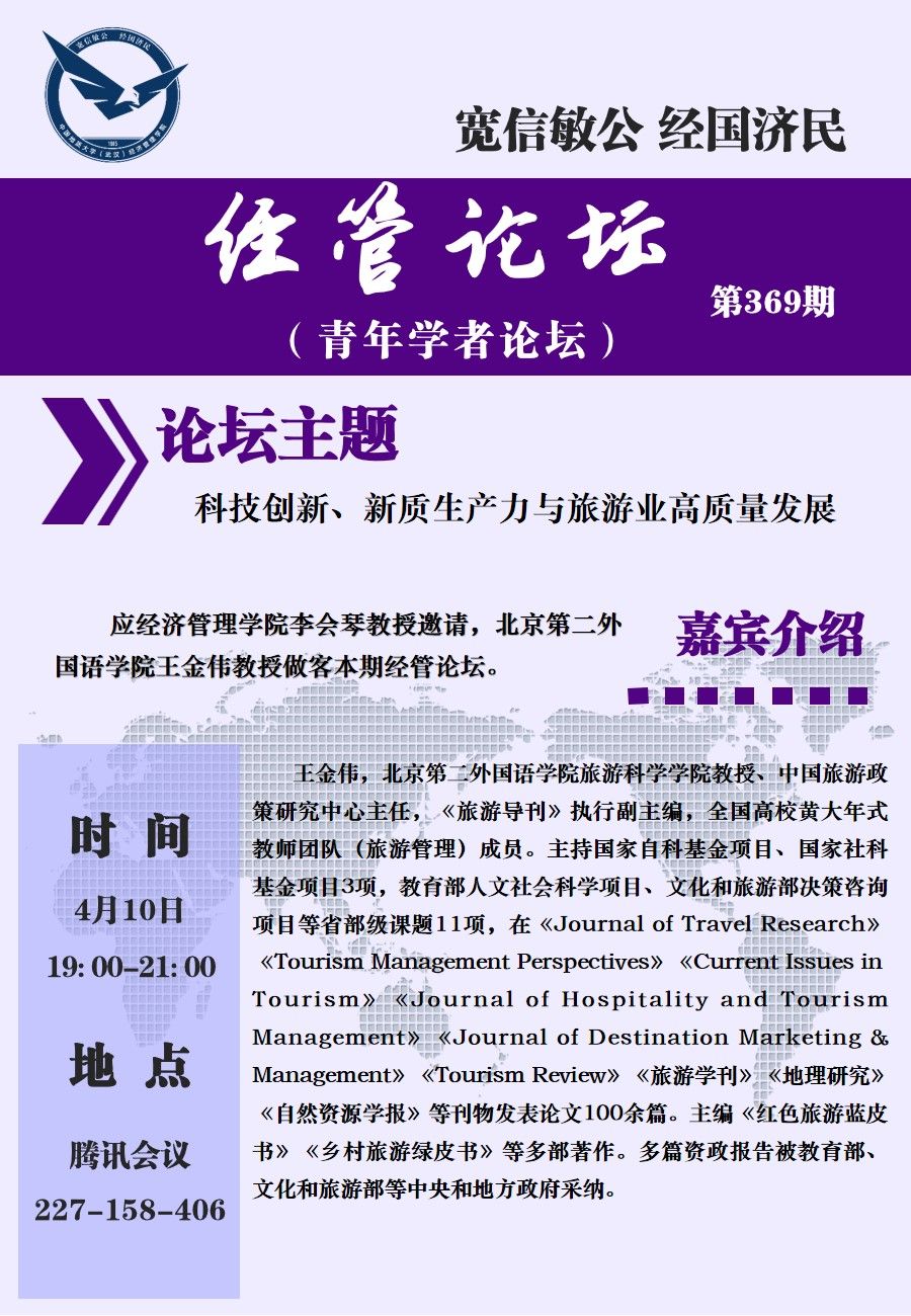 黑料网 论坛(第369期)科技创新、新质生产力与旅游业高质量发展