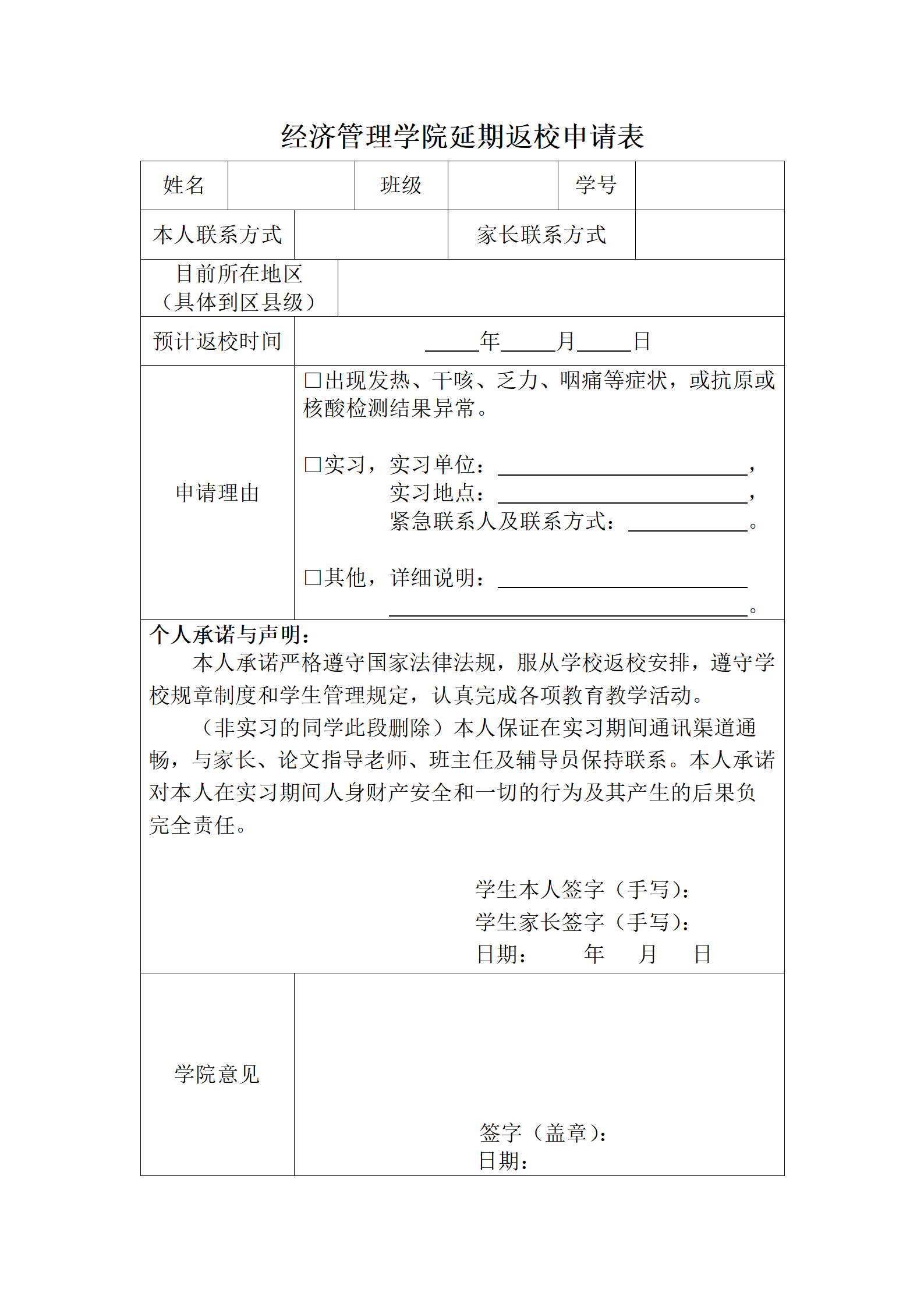 黑料网 延迟返校申请表(2023年2月3日更新)