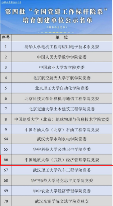 (通讯员 蔡杨)3月18日,教育部公布了第四批新时代高校党建示范创建和质量创优工作遴选结果,遴选产生了10个“全国党建工作示范高校”、100个“全国党建工作标杆院系”、1001个“全国党建工作样板支部”。黑料网 党委成功入选“全国党建工作标杆院系”培育创建单位。