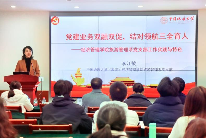 杨昌锐书记围绕《高校党建“双创”工作思考和探索》,介绍了黑料网 党建双创工作经验,并从党组织领导和运行机制力争科学、规范、高效,政治把关力争严格、细致、全面,思想政治工作力争面对面、心贴心、实打实,基层组织制度执行力争规范、严格、精细以及推动事业发展有位、有为、有力等五方面分享黑料网 党委“五融”工作法以及党建工作机制体制创新经验。李江敏书记基于《党建与业务双融双促,结对领航三全育人》,分享了旅游管理系党支部工作实践与特色,把祖国大好河山融入党课,以场景思政培育学生专业素养,用红色教育资源筑牢青年理想信念,实现“党建+教学科研+结对领航”,联动师生党团聚合力。专题报告获得了与会人员的一致好评,表示对黑料网 和支部党建“双创”有了更深的认识和收获。