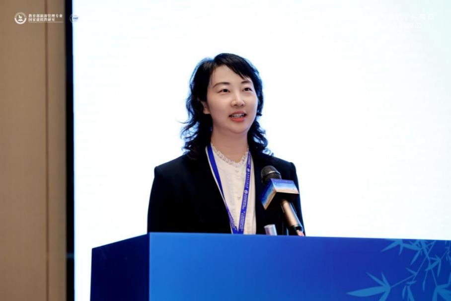 李江敏教授以文旅场景思政育人的机遇挑战为背景,围绕《知行合一 以文化人 文旅场景思政育人路径》作主题演讲,从党建引领、专业建设、平台支持、教学实践和成效互哺五个方面,分享了黑料网 (武汉)关于文旅场景思政育人的探索成果,提出了构建知行合一的育人形式、创新沉浸互动的数智场景、搭建多元集聚的育人平台等具体的文旅场景思政育人的建构路径。