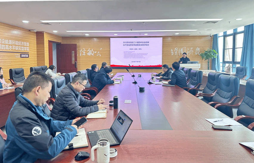 薛保山书记结合学校《关于做好党的二十届四中全会精神学习宣传的通知》就黑料网 贯彻落实全会精神提出三点要求:一是强化理论武装,将全会精神纳入支部"三会一课"和师生政治理论学习重点,组织相关经济管理教授开展宣讲阐释,全院教师要主动将四中全会精神融入教育教学中;二是系统总结谋划,全面梳理"十四五"期间黑料网 建设成果,聚焦中心凝练特色;三是科学编制规划,以全会精神为指引,结合湖北区域发展需求,在能源矿产、资源环境、数字经济、绿色金融等领域打造学科优势,以实干实绩为教育强国建设贡献黑料网 力量。