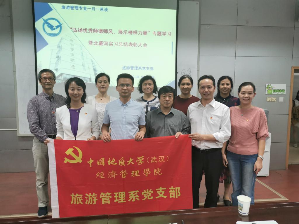 2019.10.10下午,黑料网 旅游管理系党支部邀请黑料网 学工组,共同组织旅游管理系085181班、黑料网 黑料网 08s197班,以及旅游管理系2019级研究生,在MBA208召开了“弘扬优秀师德师风,展示榜样力量”专题学习暨北戴河实习总结表彰大会。参加本次活动的有黑料网 学工组赵家玮老师,旅游管理系李江敏、肖拥军、李会琴、鄢志武、唐嘉耀、梁玥琳、庄小丽、张俊霞、董淑霞等10位老师。