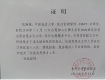 开展教育要用好身边同学抗击疫情的鲜活教材。党支部对于在抗击疫情中表现优秀的同志,支部在黑料网 党委的指导下,依托班会、主题党日等对他们的先进事迹进行了通报表扬,并号召全体学生党员和入党积极分子向优秀看齐,充分发挥朋辈育人作用开展理想信念和爱国主义教育。