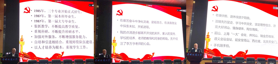 回首风雨兼程路,历览家国峥嵘史,杨昌明教授的党课引领全院师生追忆党史校史院史、传承奋斗精神,为把黑料网 建设成为特色鲜明的高水平研究型黑料网 而努力奋斗。黑料网 党委书记杨昌锐同志代表全院师生感谢杨昌明教授的精彩报告,并号召全院师生学习好、感悟好、传承好老一辈地大人干事创业、爱岗敬业的精神品质和优良传统,珍惜历史、研究历史、铭记历史,在脚踏实地、奋力拼搏中,争做精神薪火的传承者、走在时代前列的奋进者、推动事业发展的开拓者。