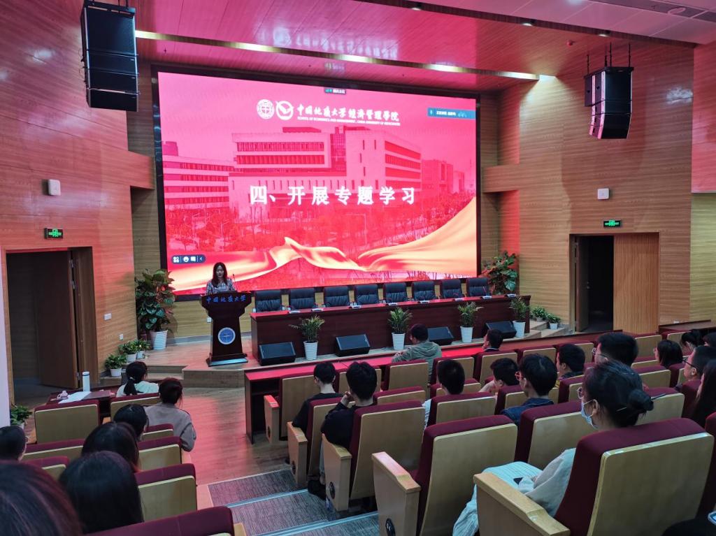 悟思想,在不懈奋斗中绽放绚丽之花。会计学专业本科生党支部2019级学生党员、084193班班长赵成祥领学习近平总书记在清华大学考察时的重要讲话精神,围绕青年学生如何置身于新时代历史方位、明确奋斗责任使命、找准成长方法路径、立足本职实学实干等方面分享了学习心得;会计学专业2017级学生党员、学生班团干部冯晓华则结合自身经历,围绕坚定立场、学习实践、能力提升、发展规划等方面引导低年级同学应尽快找准发展方向、树立远大志向、珍惜求学时光、加紧勤学苦练。