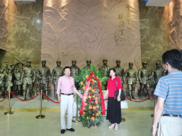 上午10:30抵达中原纪念馆,支部党员代表向革命先烈敬献花篮,全体党员鞠躬致敬,并重温入党誓言。