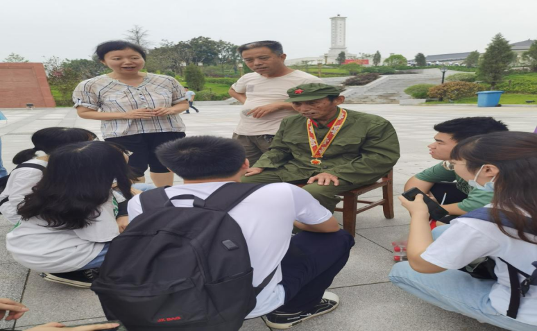 在参观过程中,我系师生偶遇当地91岁高龄退伍老红军,同学们激动不已,围着老红军询问革命心路历程,久久不舍的离开。