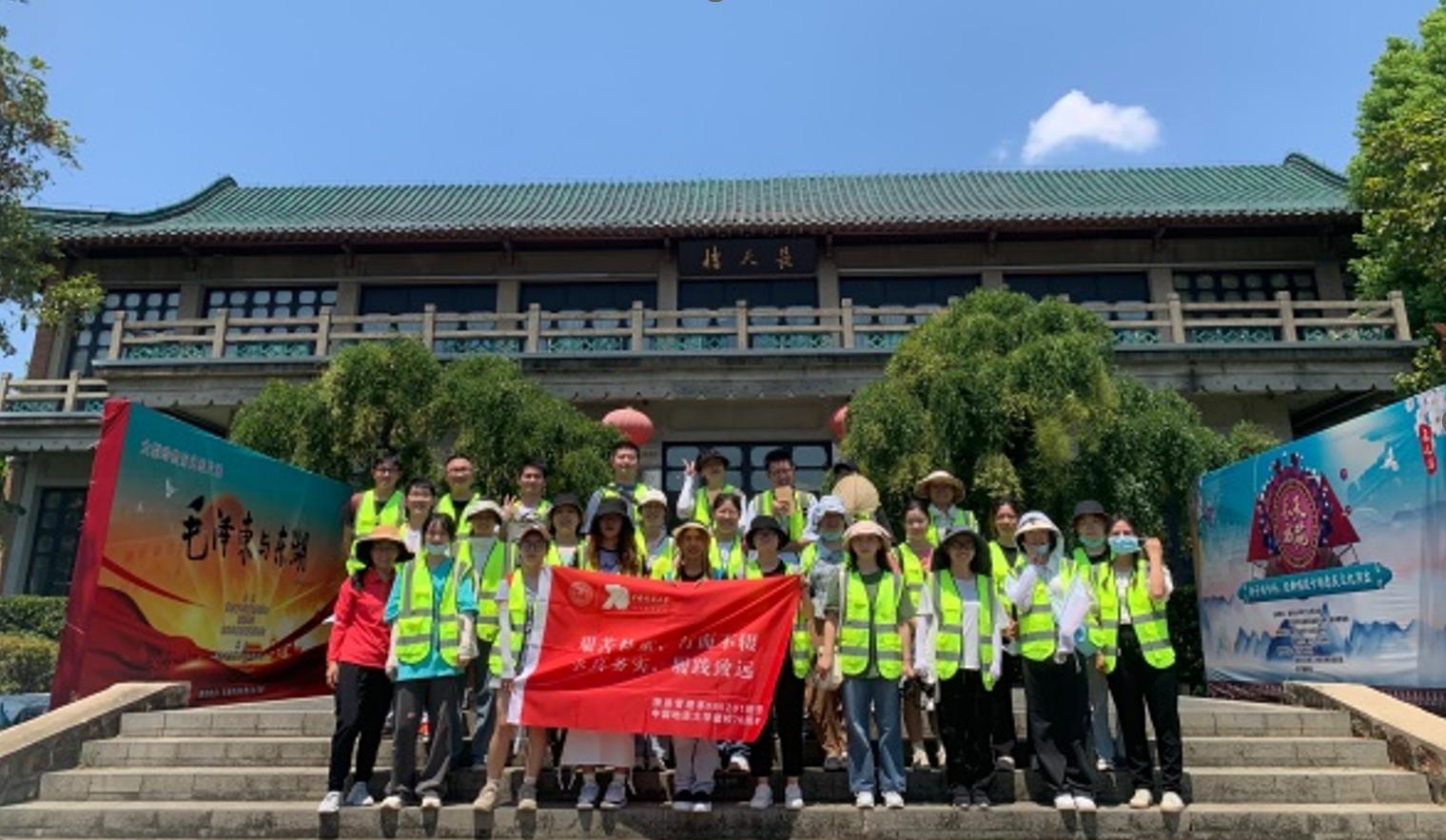 在实习的第一站东湖听涛景区内,结合景区内的屈原纪念馆、行吟阁等景点,以及长天楼内大型历史图片展《毛泽东与东湖》,开展了致敬伟人、“传承爱国主义精神,做新时代旅游人”的思政教学。