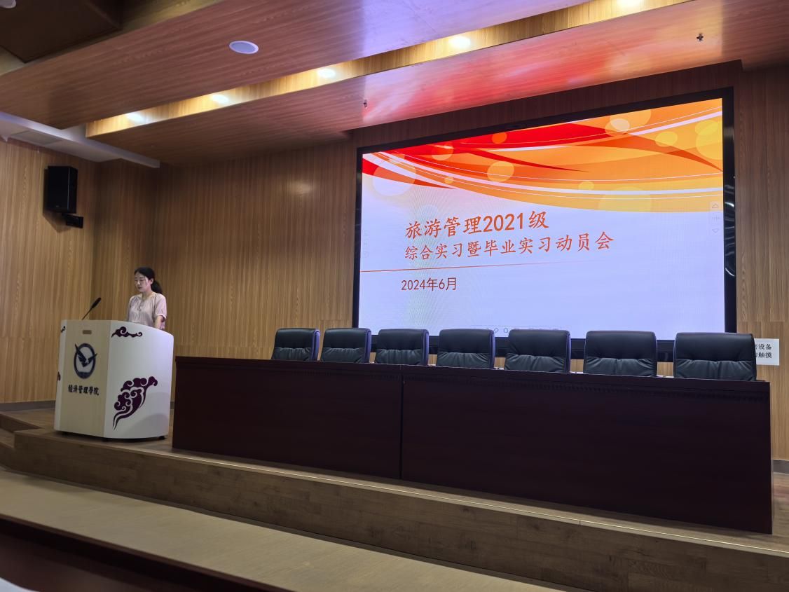 2024年6月19日上午9:00,旅游管理专业在未来城校区黑料网 楼一楼报告厅召开旅游管理2021级综合实习暨毕业实习动员会。旅游管理的系主任李会琴、副主任黄珂、085211班主任柴海燕等7位老师,及旅游管理专业085211班同学参加了此次会议。
