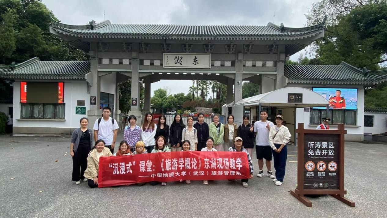 (通讯员:周玲 黄珂)2024年10月19日,旅游管理专业085231班全体同学在《旅游学概论》任课教师周玲和班主任老师黄珂的共同带领下,来到武汉东湖生态旅游风景区感受“沉浸式”现场教学。此次教学活动旨在以课堂教学方法创新提升课程教学质量,激发学生专业学习热情和兴趣,培养学生综合素质和实践能力,也是旅游管理系省级一流课程《旅游学概论》教学方法改革创新的探索和实践。