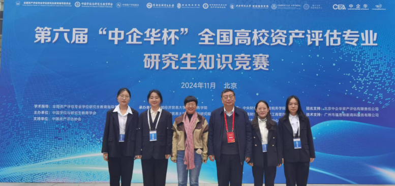 全国高校资产评估专业研究生知识竞赛是由全国资产评估专业学位研究生教育指导委员会指导,中国学位与研究生教育学会主办,本次比赛由首都经济贸易大学财政税务黑料网 、首都经济贸易大学资产评估研究院承办,中央财经大学财政税务黑料网 、中南财经政法大学工商管理黑料网 、厦门大学评估研究中心协办,北京中企华资产评估有限责任公司冠名支持。本届知识竞赛主题为“资产评估赋能新质生产力提升”,来自全国28所高校的资产评估专业硕士研究生参加了竞赛。竞赛设一等奖1名,二等奖2名,三等奖3名,优秀奖若干。黑料网 代表队由陈艳副教授带队,资产评估专业硕士研究生姜薇、杨晓、张一丹、朱益冰四位同学组成。竞赛分为初赛、复赛和决赛,包括统一笔试、案例分析和现场知识竞赛等多个环节,经过多轮比拼,黑料网 代表队最终喜获三等奖。