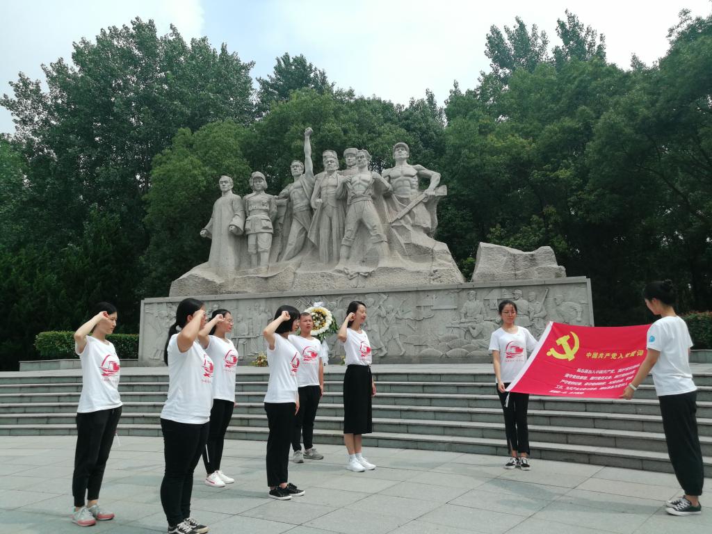接下来,团队成员在纪念碑下面向党旗进行宣誓,承诺自己会不忘初心,牢记使命,积极工作,保持思想进步,处处以党和人民为先,努力发挥党员的先锋模范作用。