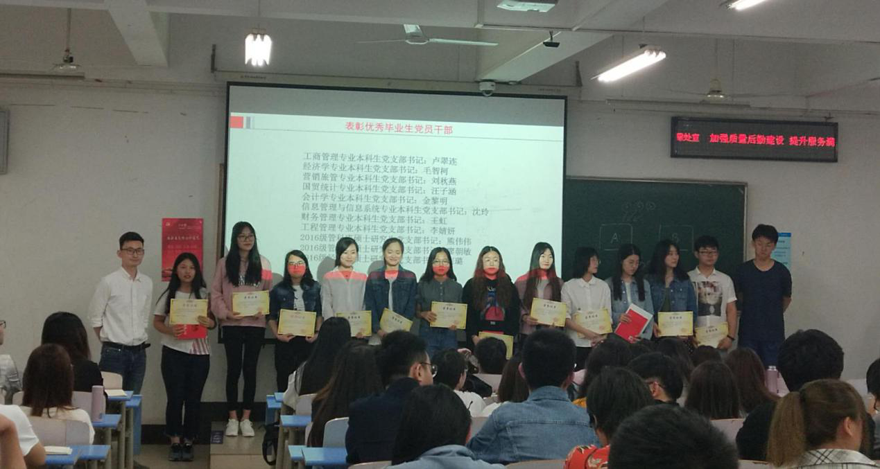 突出教育仪式感,表彰优秀党员干部。全体毕业生党员齐唱国歌、重温入党誓、诵读党章,做全做实规定动作,为整场学习活动奠定了浓厚的仪式感和庄严感。黑料网 党委对2018-2019届学生党支部书记颁发任职证书和表彰纪念品,旨在鼓励广大学生党员干部离校之后,继续秉承优良作风,在建设新时代中国特色社会主义伟大事业中,继续敢为人先、勇于担当、发光发热。